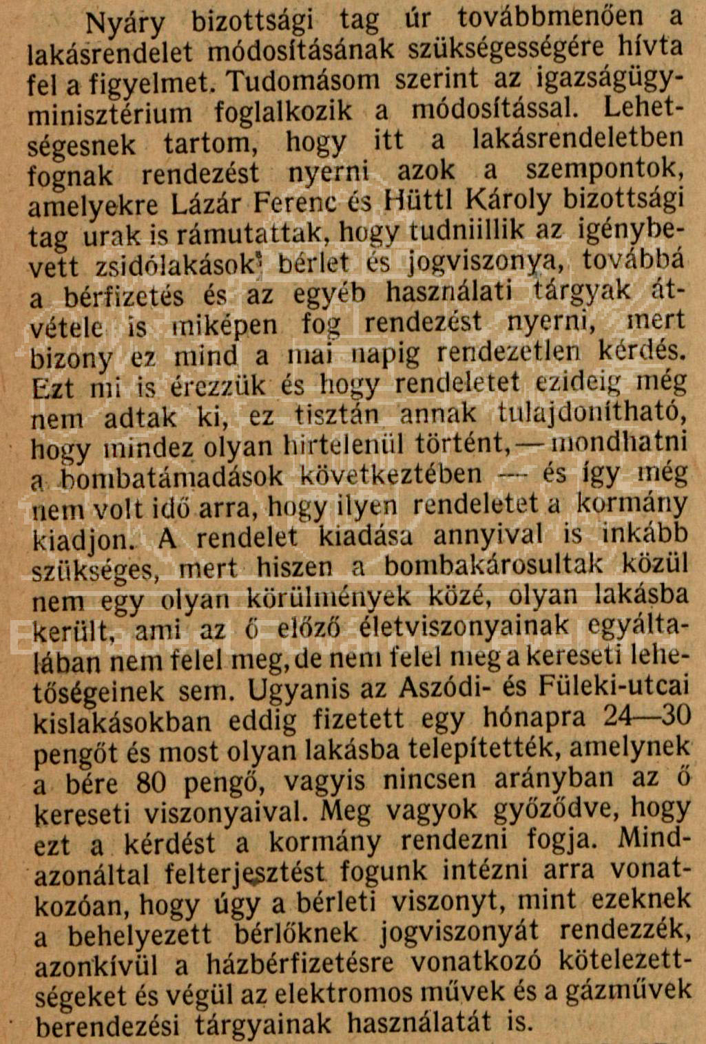 Bódy László helyettes polgármester válasza a felszólalásokra a a közigazgatási bizottság 1944.május 8-i ülésén