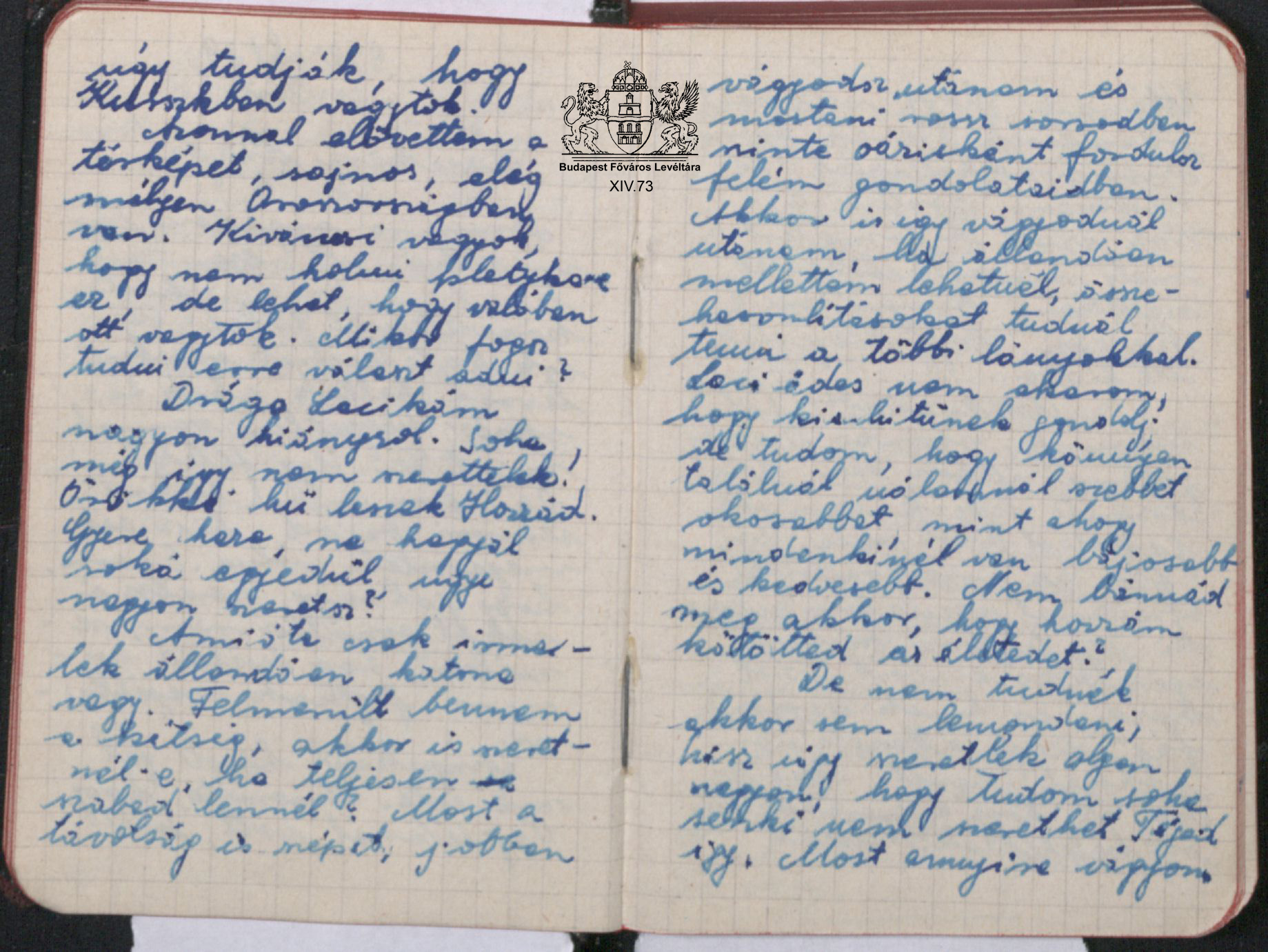 "...Gyere haza, ne hagyjál soká egyedül, ugye nagyon szeretsz? Amióta csak ismerlek, állandóan katona vagy. Felmerült bennem a kétség, akkor is szeretnél-e, ha teljesen szabad lennél? Most a távolság is szépít, jobban vágyódsz utánam és mostani rossz sorodban szinte oázisként fordulsz felém gondolataidban. Akkor is így vágyódnál utánam, ha állandóan mellettem lehetnél, összehasonlításokat tudnál tenni a többi lányokkal?...” Bp., 1942. október 29.