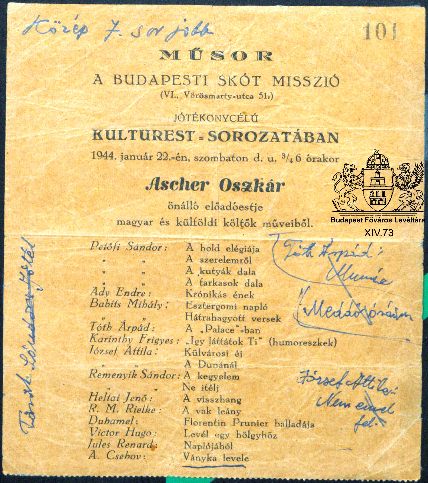 Megmaradt levelek, odalett kedves... Toggle image Részvétel kulturális rendezvényen Type of document színlap Date of creation 1944.01.22 Collection Budapest Főváros Levéltára Related work Megmaradt levelek, odalett kedves... Reference code XIV.73 Letöltés