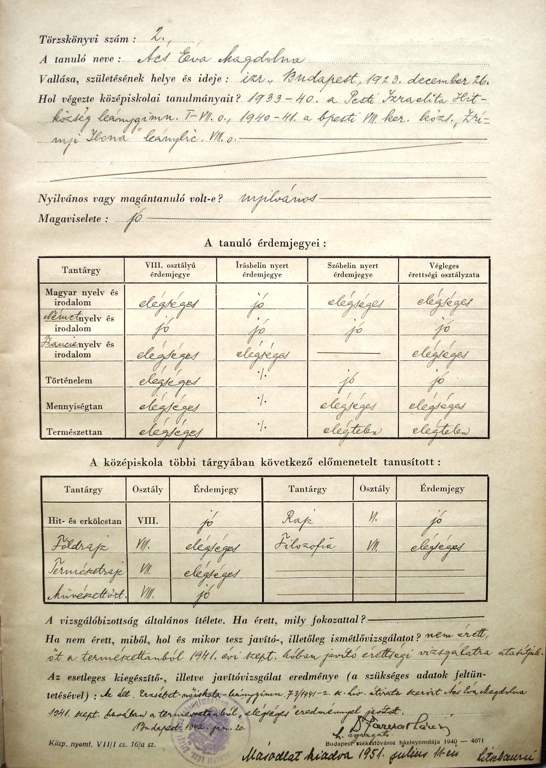 Megmaradt levelek, odalett kedves... Previous Toggle image Ács Éva érettségi törzskönyvi lapja Type of document nyilvántartás Date of creation 1941 Collection Budapest Főváros Levéltára Related work Megmaradt levelek, odalett kedves... Reference code XIV.73 Letöltés Previous