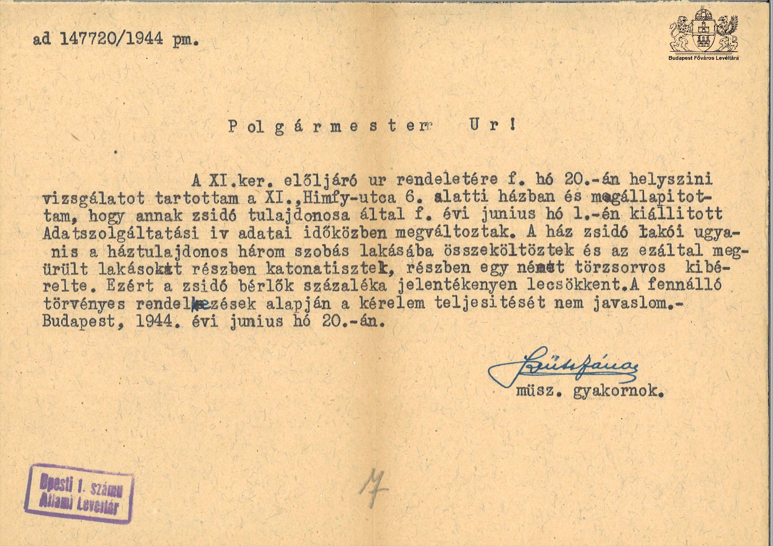 Jelentés a XI. Himfy u. 6. számú ház ügyében