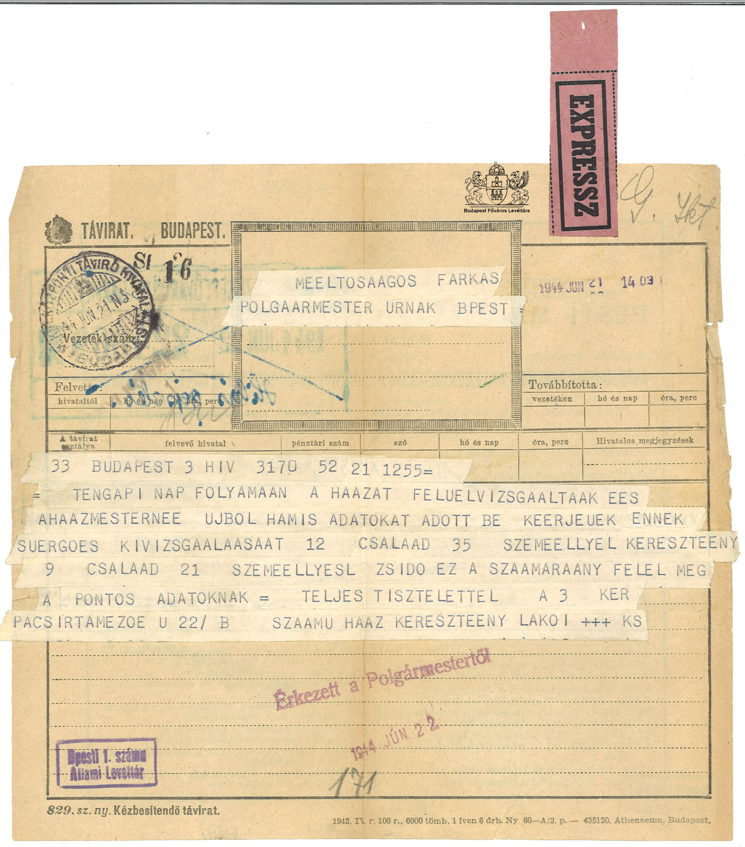 "... hogy mi maradhassunk és ők távozzanak" - Lakossági reakciók a csillagos házak kijelölésére PreviousNext Toggle image A III. Pacsirtamező u. 22/b számú ház lakóinak kérelme Type of document kérelem Date of creation 1944.06.20 Collection Budapest Főváros Levéltára Related work "... hogy mi maradhassunk és ők távozzanak" - Lakossági reakciók a csillagos házak kijelölésére Reference code HU BFL IV.1409.c 2789/1944-IX. Letöltés PreviousNext