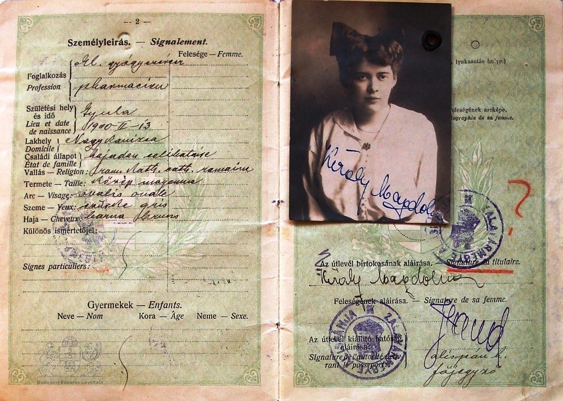 Egy vegyesházasság keletkezéstörténete Toggle image Király Magdolna útlevele Type of document útlevél Date of creation 1927 Collection Budapest Főváros Levéltára Related work Egy vegyesházasság keletkezéstörténete Reference code XIV.181 Letöltés