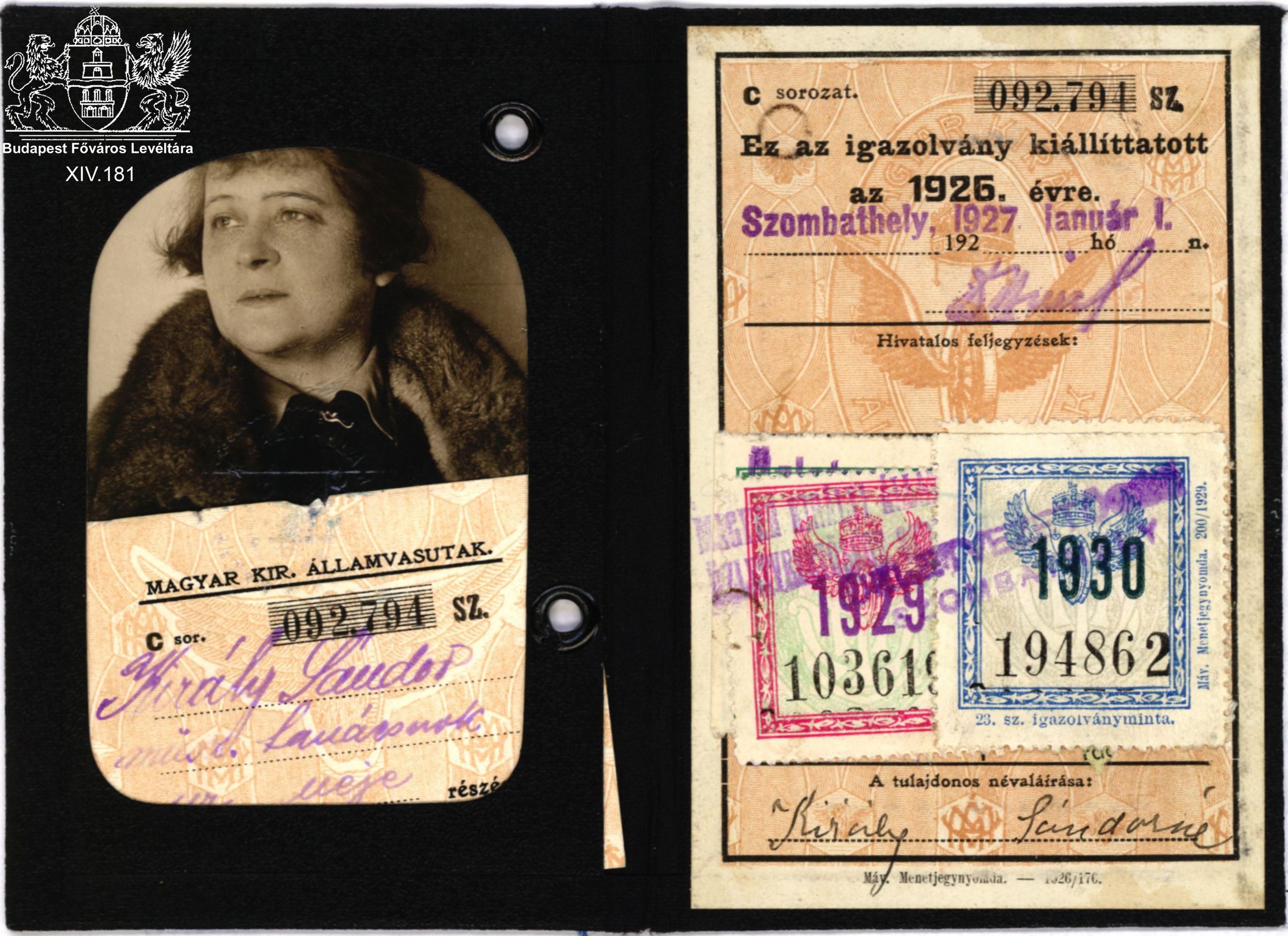 Egy vegyesházasság keletkezéstörténete Previous Toggle image Király Sándorné vasúti igazolványa Type of document igazolvány Date of creation 1927 Collection Budapest Főváros Levéltára Related work Egy vegyesházasság keletkezéstörténete Reference code XIV.181 Letöltés Previous