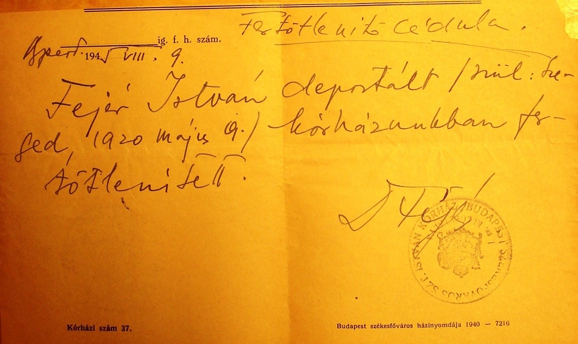 Ujjlenyomatot rögzítő igazolvány, 1945