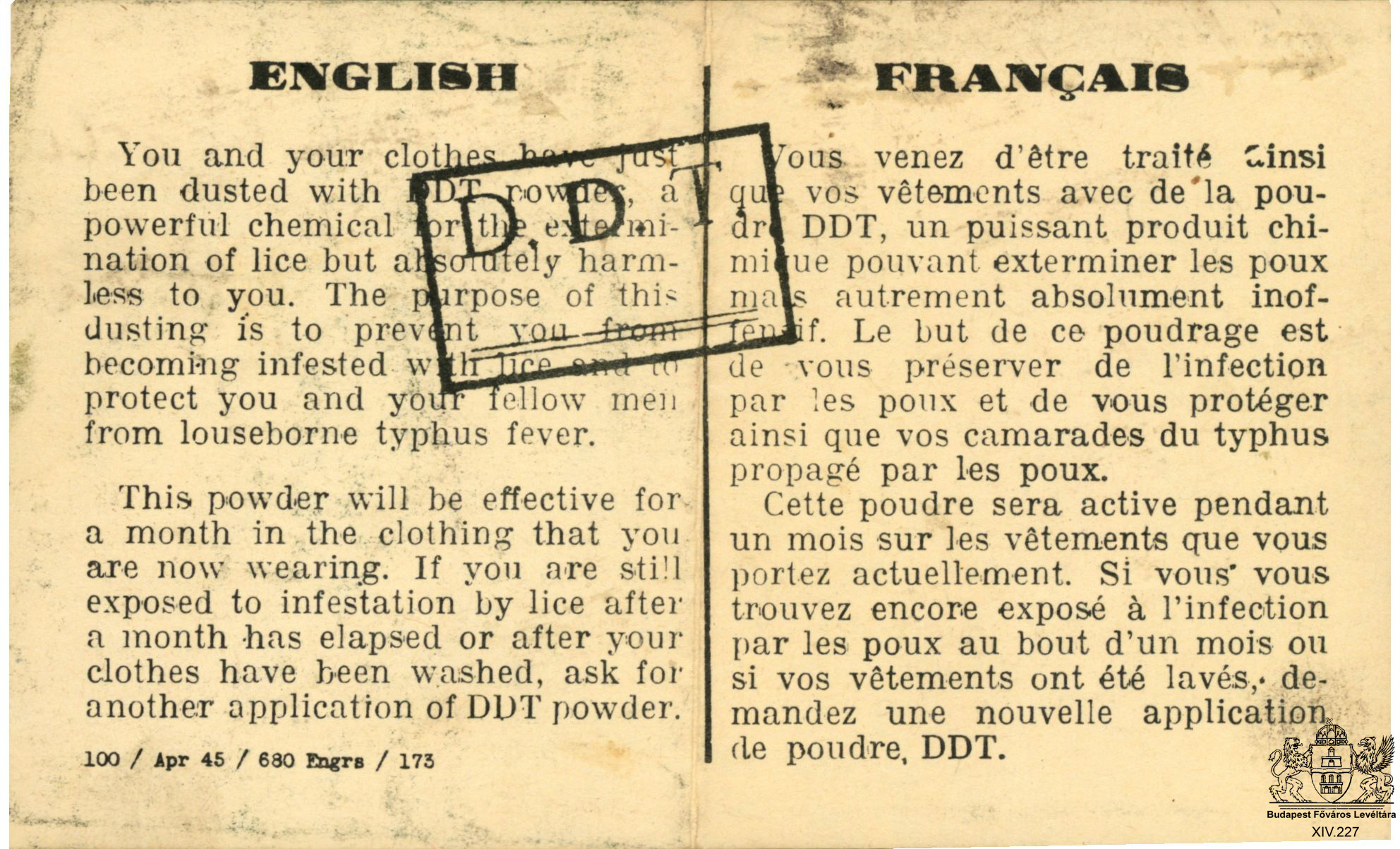Tájékoztató a koncentrációs táborokból felszabadítottak számára a DDT fertőtlenítőszerről