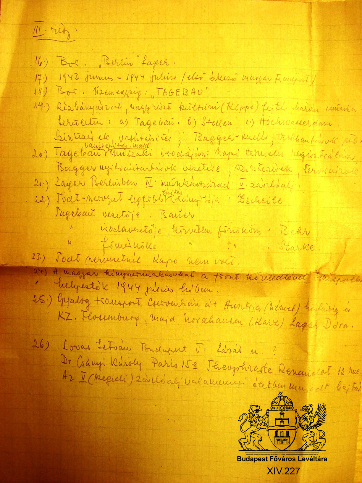 A munkaszolgálat változatai PreviousNext Toggle image Deportálás körülményeiről készült kérdőív 2. Type of document feljegyzés Date of creation 1960 Collection Budapest Főváros Levéltára Related work A munkaszolgálat változatai Reference code XIV.227 Letöltés PreviousNext