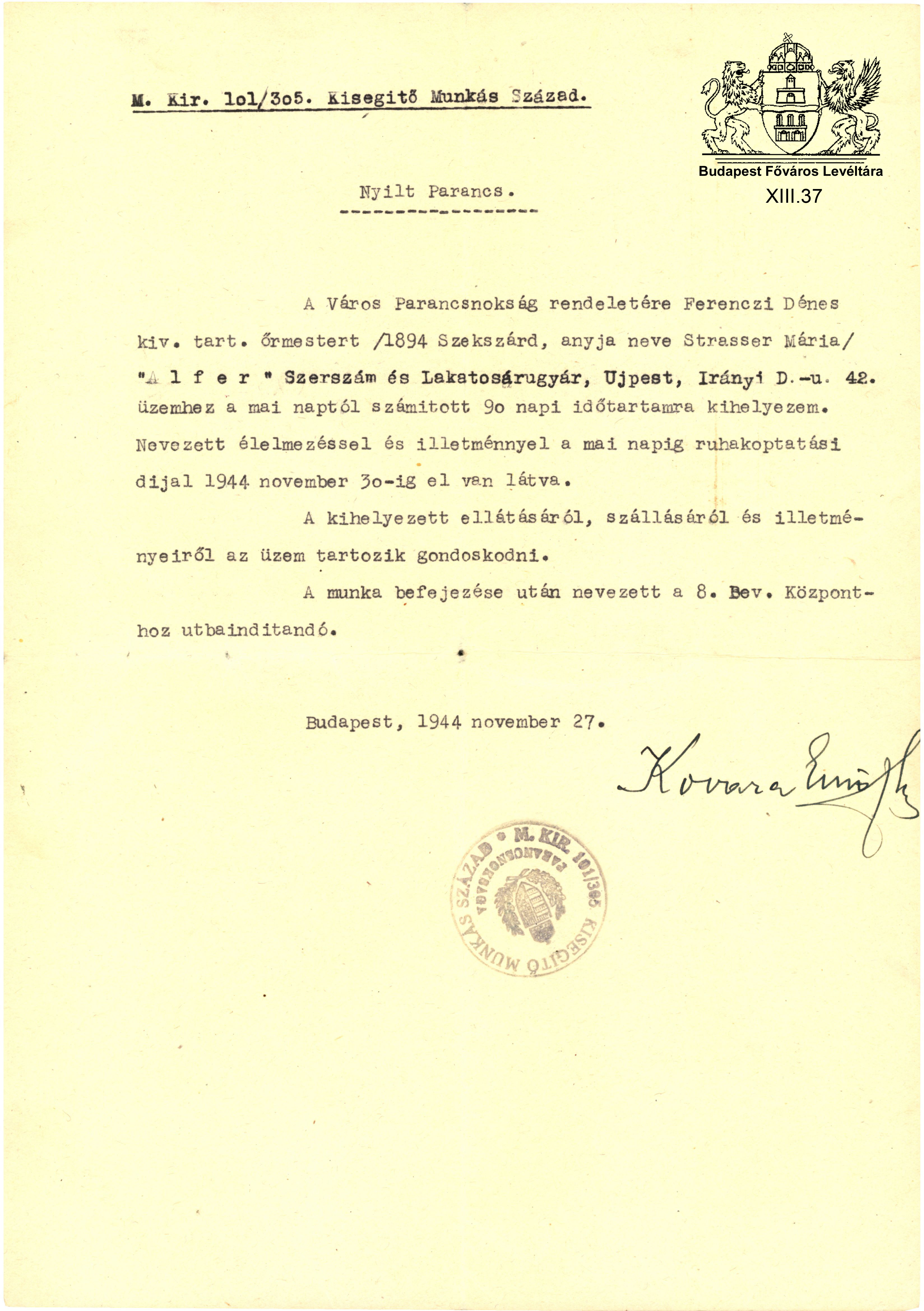 Nyílt parancs hadiüzemhez való kihelyezésről