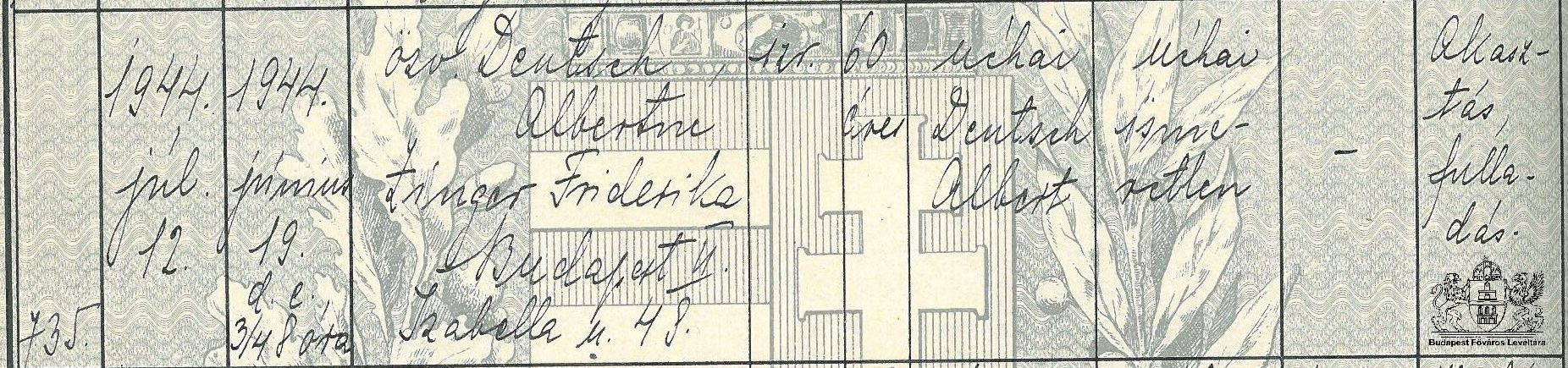 "Az öngyilkosságok rekord-éjszakája" PreviousNext Toggle image Özv. Deutsch Albertné halotti anyakönyvi bejegyzése Type of document halotti anyakönyvi bejegyzés Date of creation 1944.06.19 Collection Budapest Főváros Levéltára Related work "Az öngyilkosságok rekord-éjszakája" Reference code HU BFL XXXIII.1.a VI. kerület, halotti, 1864. kötet Letöltés PreviousNext