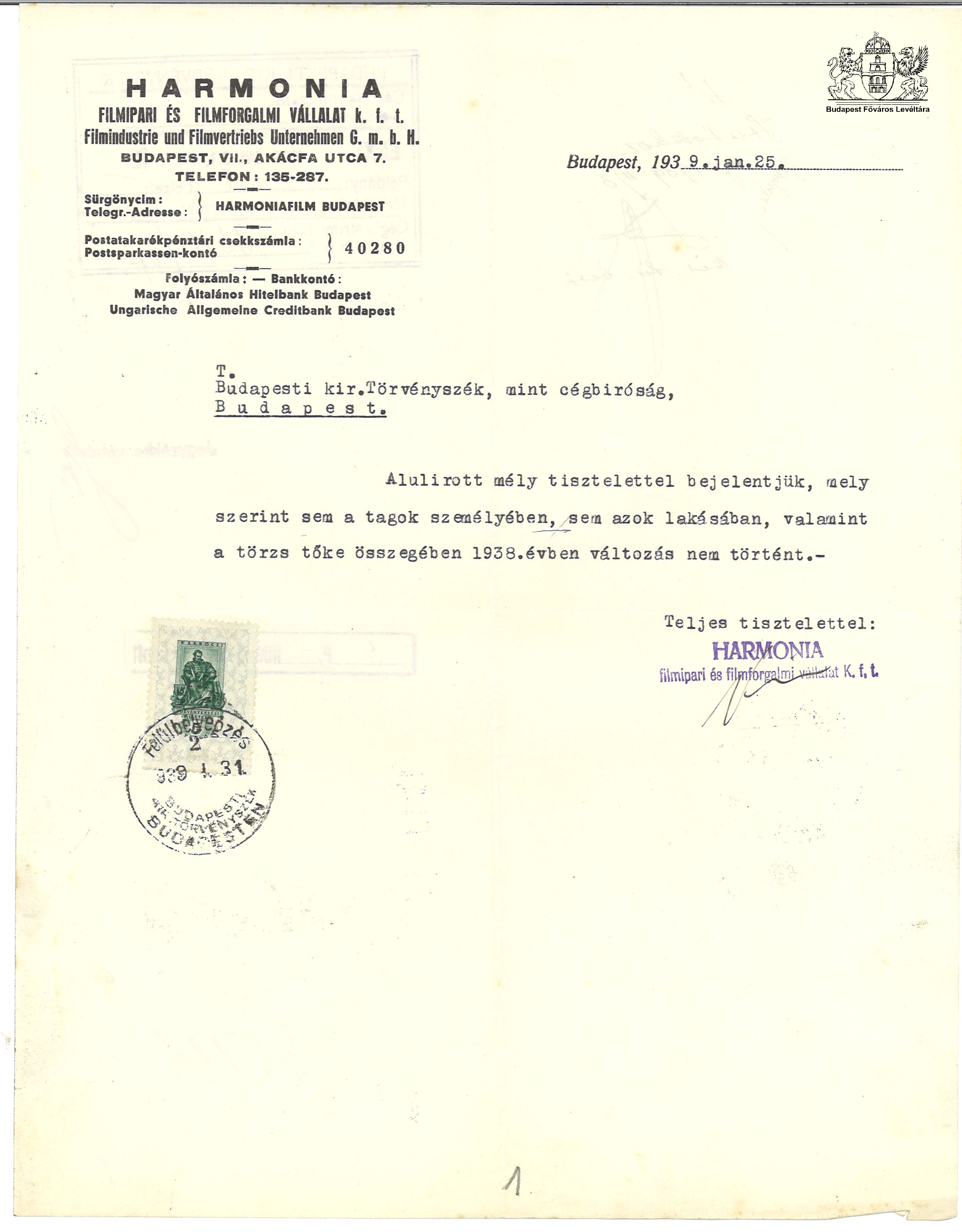 VII.2.e Harmonia Filmipari és Filmforgalmi Vállalat Kft. cégiratai
