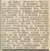 „Dr Kohn." Bemutató a Bethlen-téri Színpadon. Népszava