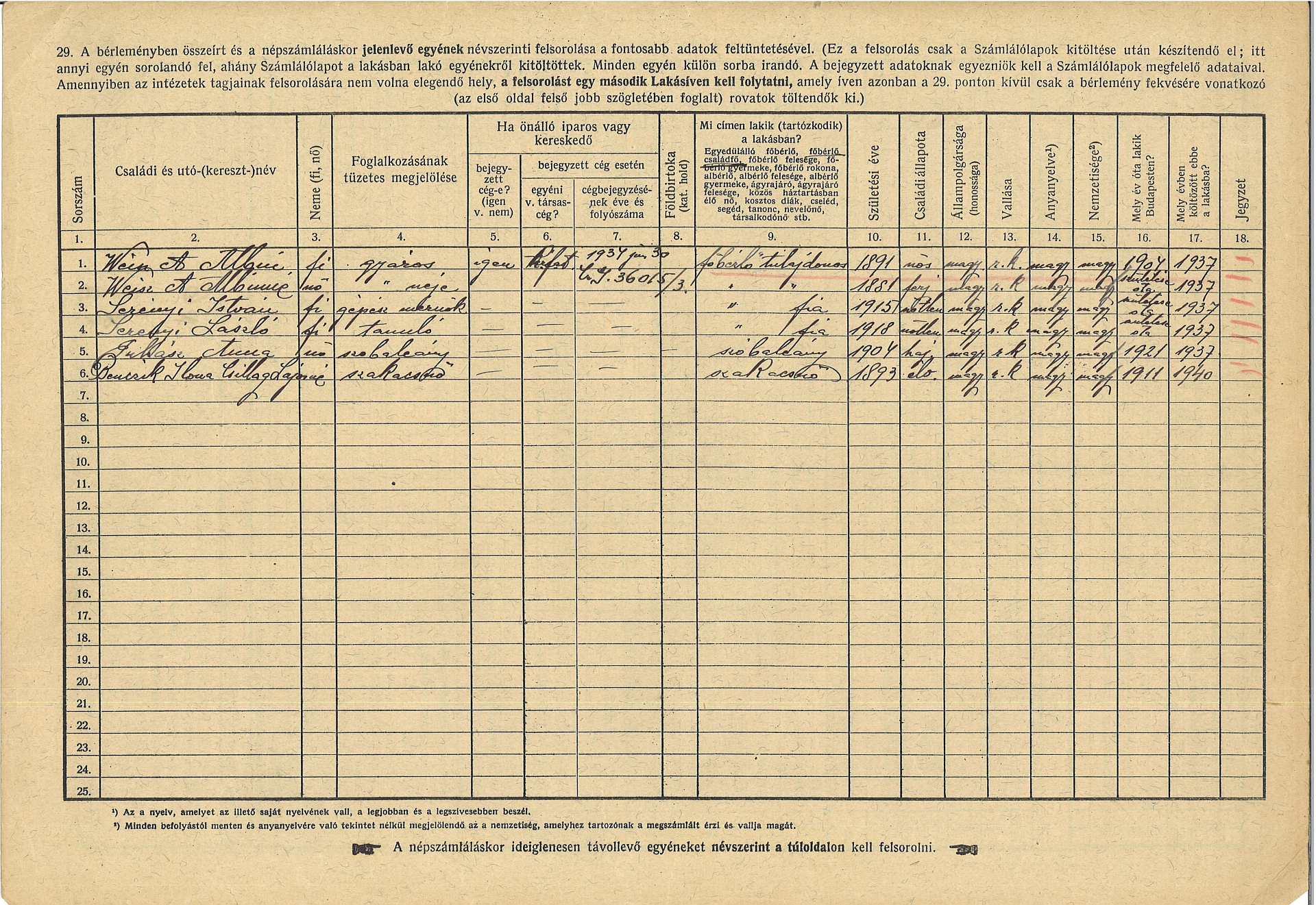 Falba zárt sorsok: XI. Mányoki út 16. Previous Toggle image 1941. évi népszámlálási lakásív Type of document Telekkönyv és lakásívek Date of creation 1941 Collection Budapest Főváros Levéltára Related work Falba zárt sorsok: XI. Mányoki út 16. Reference code BFL IV.1419.j Letöltés Previous