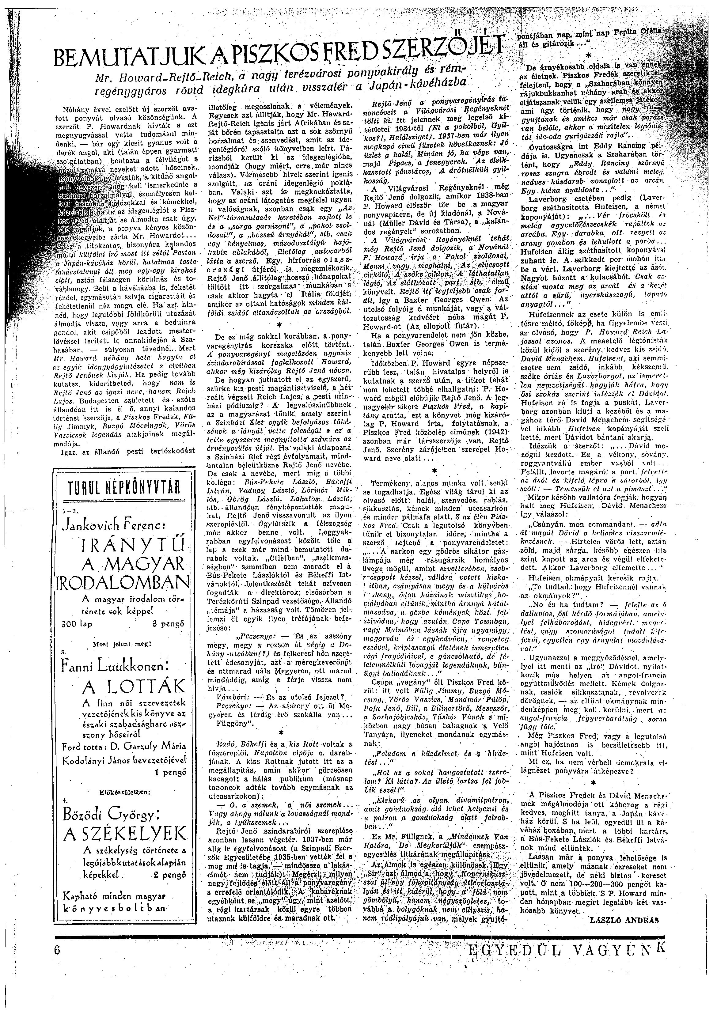 Bemutatjuk a Piszkos Fred szerzőjét c. cikk (Egyedül vagyunk c. folyóirat)