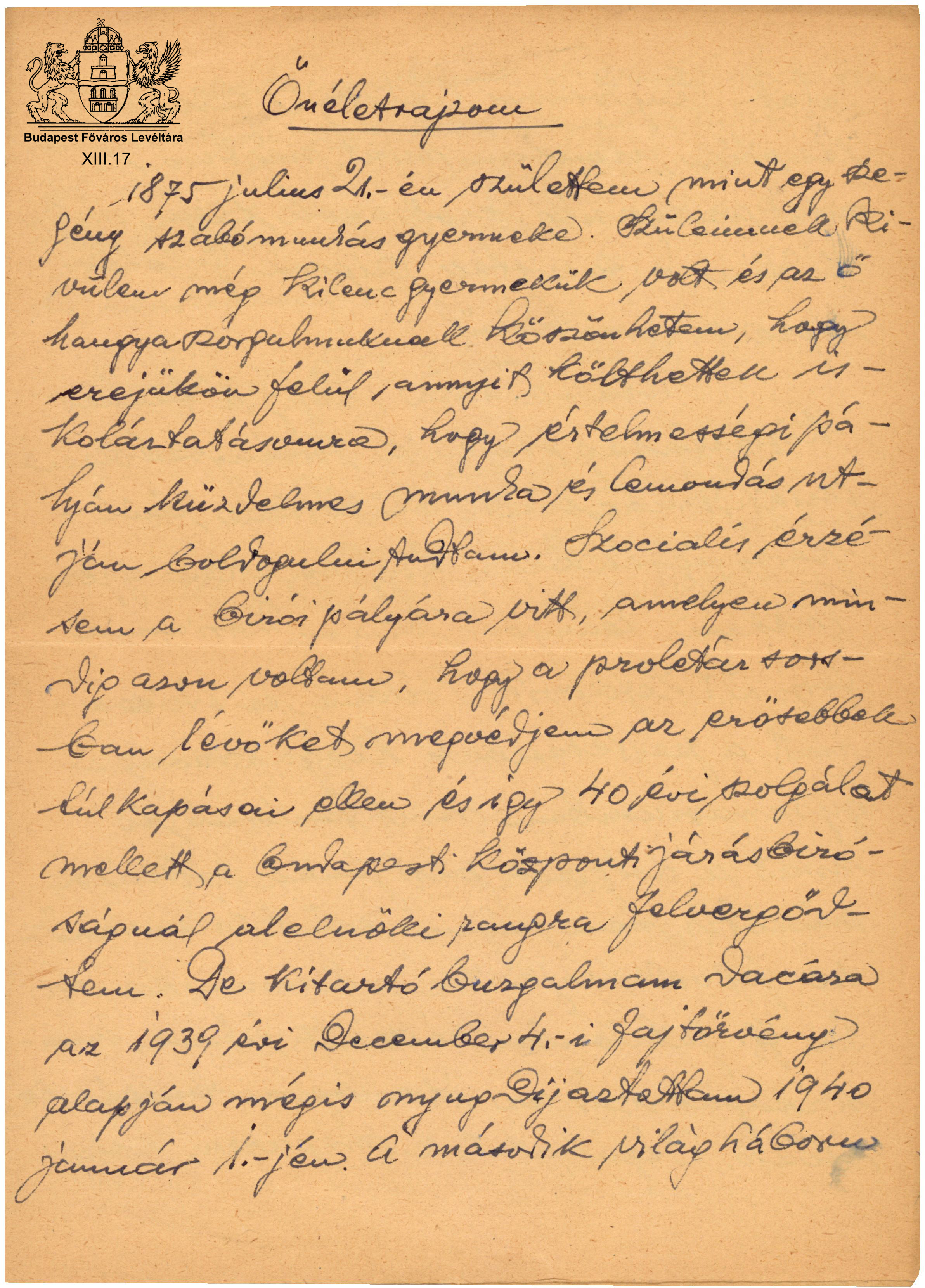 A jogfosztott járásbíró Next Toggle image Dr. Jellinek Ede ny. járásbírósági alelnök önéletrajza Dokumentum típusa önéletrajz Keletkezés ideje 1952.11.11 Őrzési hely Budapest Főváros Levéltára Vonatkozó alkotás A jogfosztott járásbíró Jelzet XIII.17 Letöltés Next