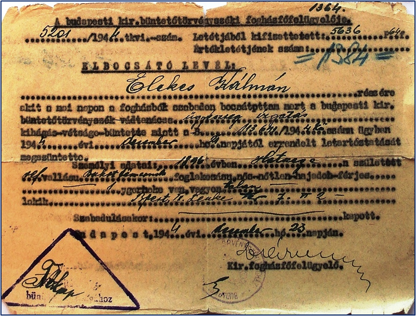 Az Elekes-Király család a városi térben Previous Toggle image Elekes Kálmán elbocsátó levele Dokumentum típusa határozat Keletkezés ideje 1944.12.23 Őrzési hely Budapest Főváros Levéltára Vonatkozó alkotás Az Elekes-Király család a városi térben Jelzet XIV.181 Letöltés Previous