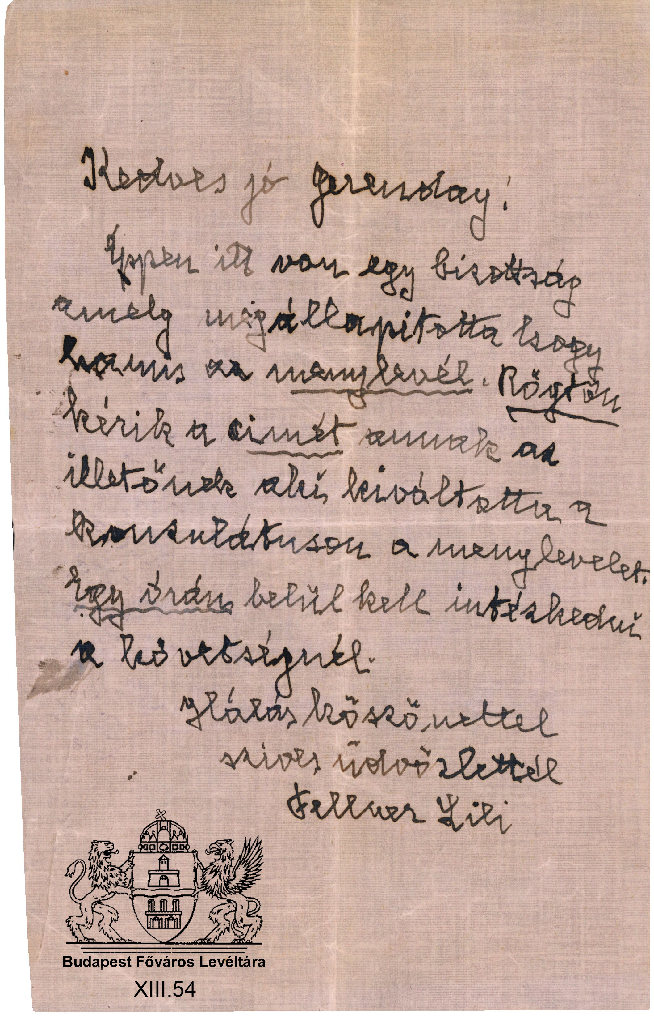 A zsidómentő Gerenday Next Toggle image Fellner Lili közbenjárást kérő üzenete Dokumentum típusa levél Keletkezés ideje 1944.10 Őrzési hely Budapest Főváros Levéltára Vonatkozó alkotás A zsidómentő Gerenday Jelzet XIII.54 Gerenday család iratai Letöltés Next
