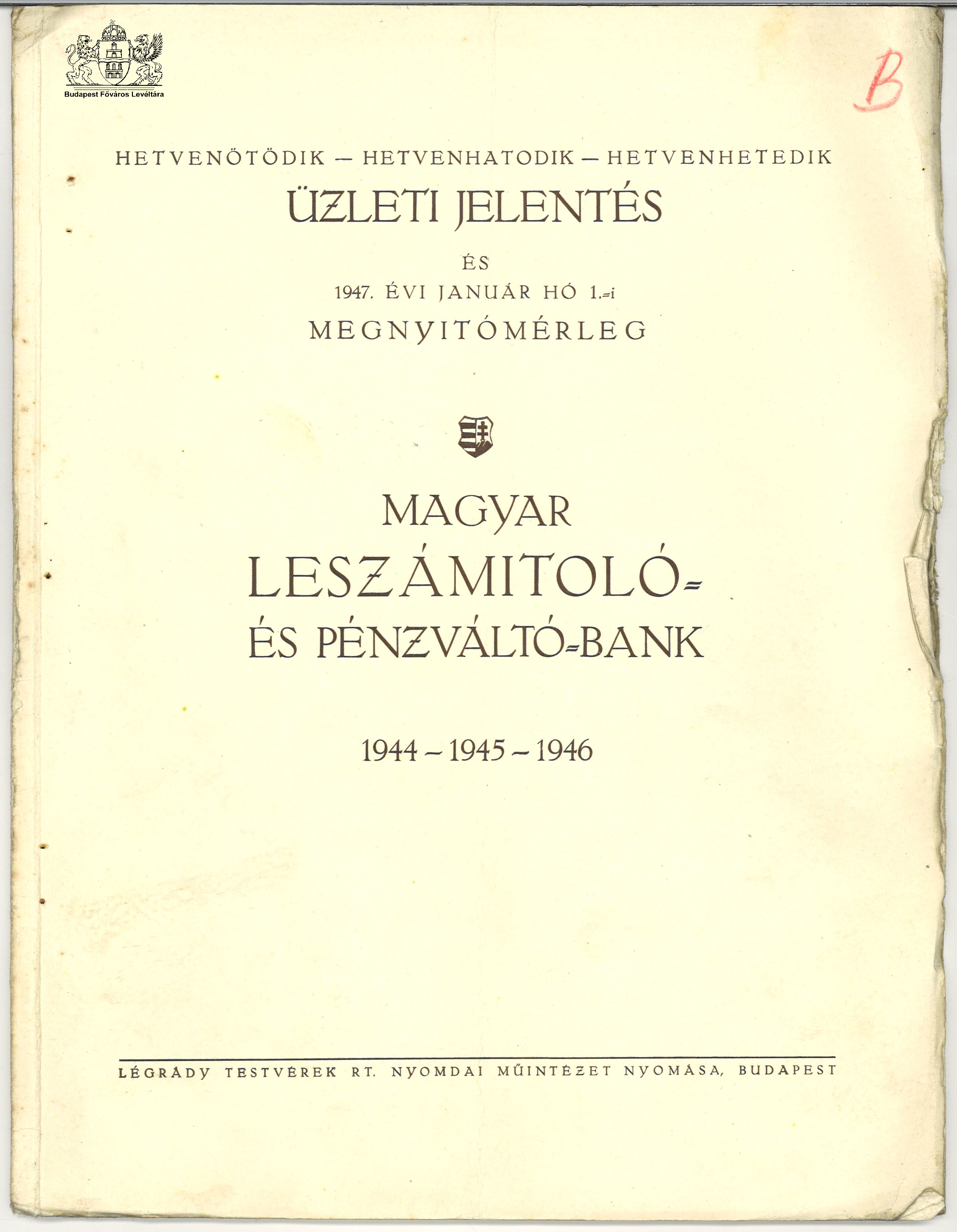 Magyar Leszámítoló- és Pénzváltóbank üzleti jelentése 1.