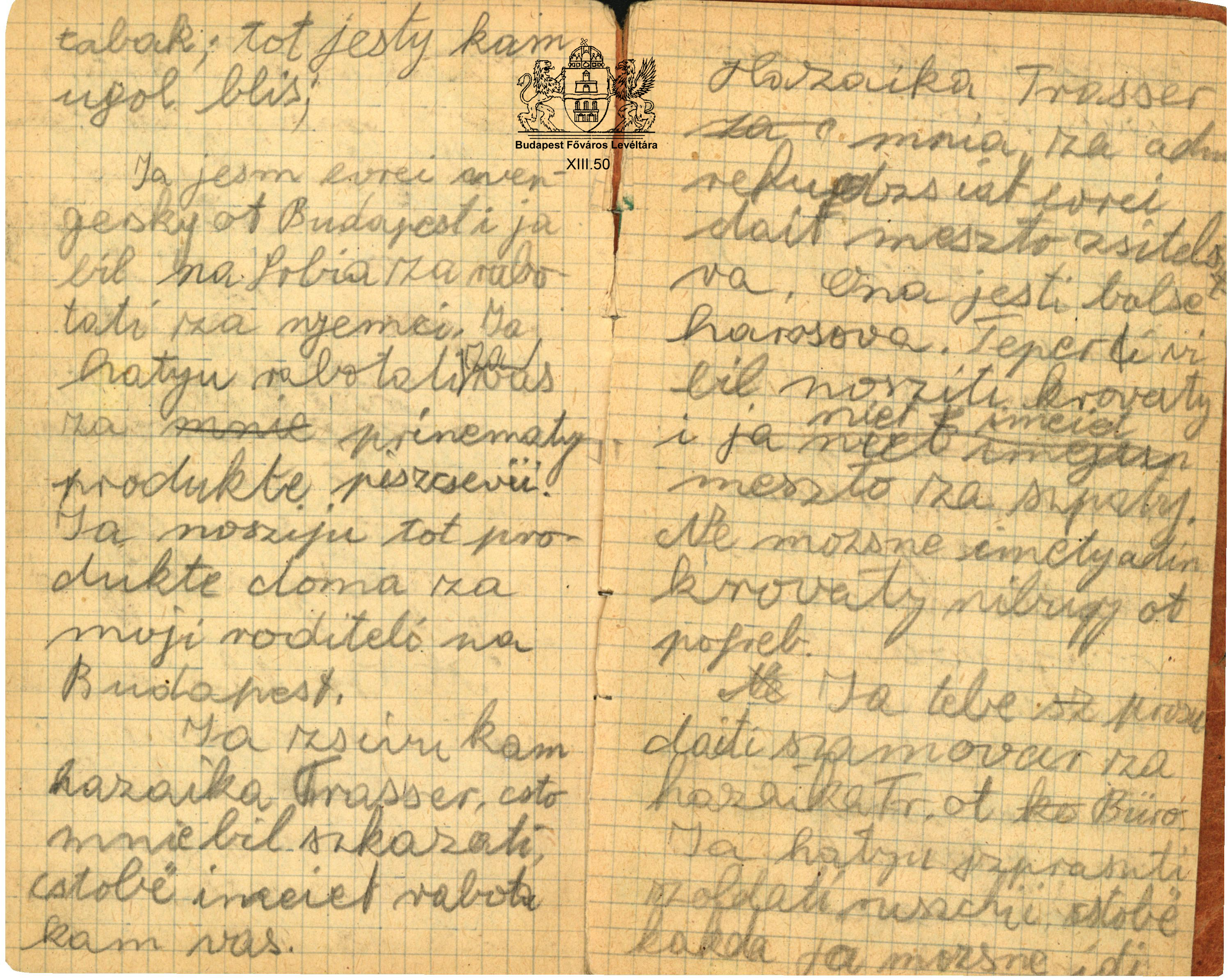 Mit mondott nekem, milyen munka van számomra? [...] Te most elvitted az ágyat, így nekem most nincsen hol aludnom. Nem lehetne valamilyen ágyat kapni mivel arra szükségem lenne. Kérlek téged adjál egy szamovárt. Szeretném megkérdezni az orosz katonákat, hogy mikor lehet menni.” (Kb. 1945 eleje)"