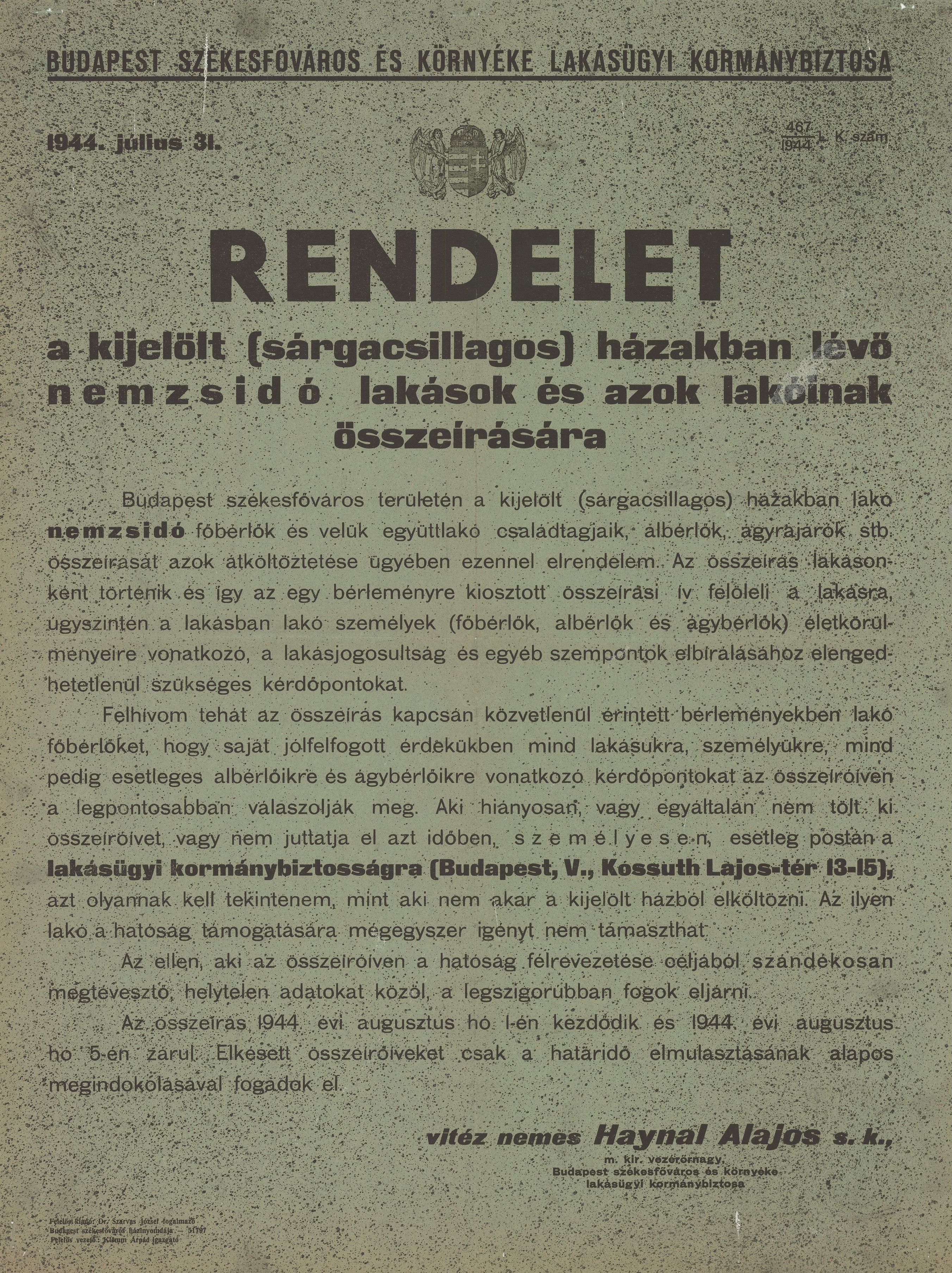 Rendelet a nemzsidó lakások és lakóik összeírásáról