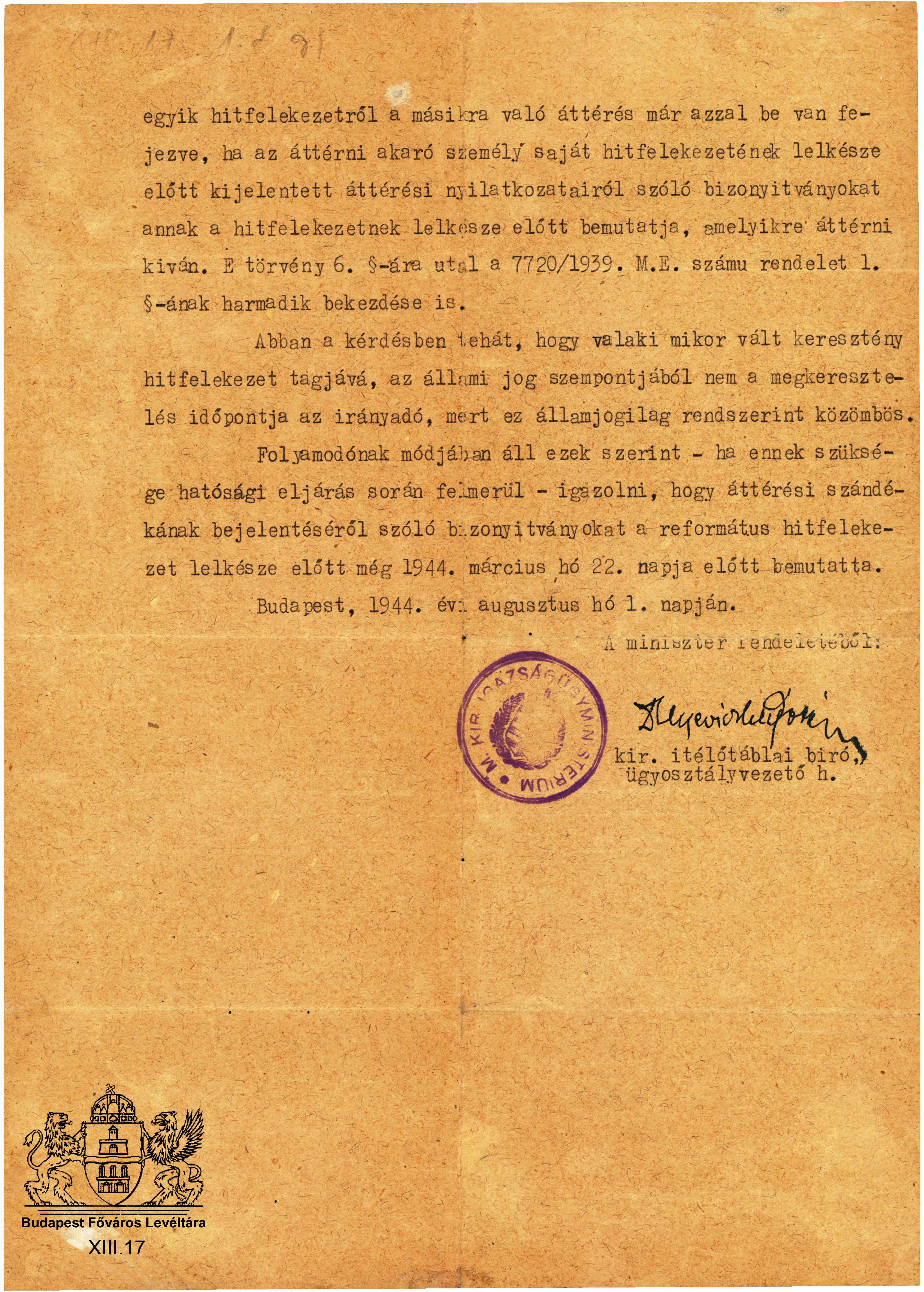 A jogfosztott járásbíró PreviousNext Toggle image Sárga csillag viselése alóli igazságügyminiszteri határozat 2. Dokumentum típusa határozat Keletkezés ideje 1944.08.01 Őrzési hely Budapest Főváros Levéltára Vonatkozó alkotás A jogfosztott járásbíró Jelzet XIII.17 Letöltés PreviousNext