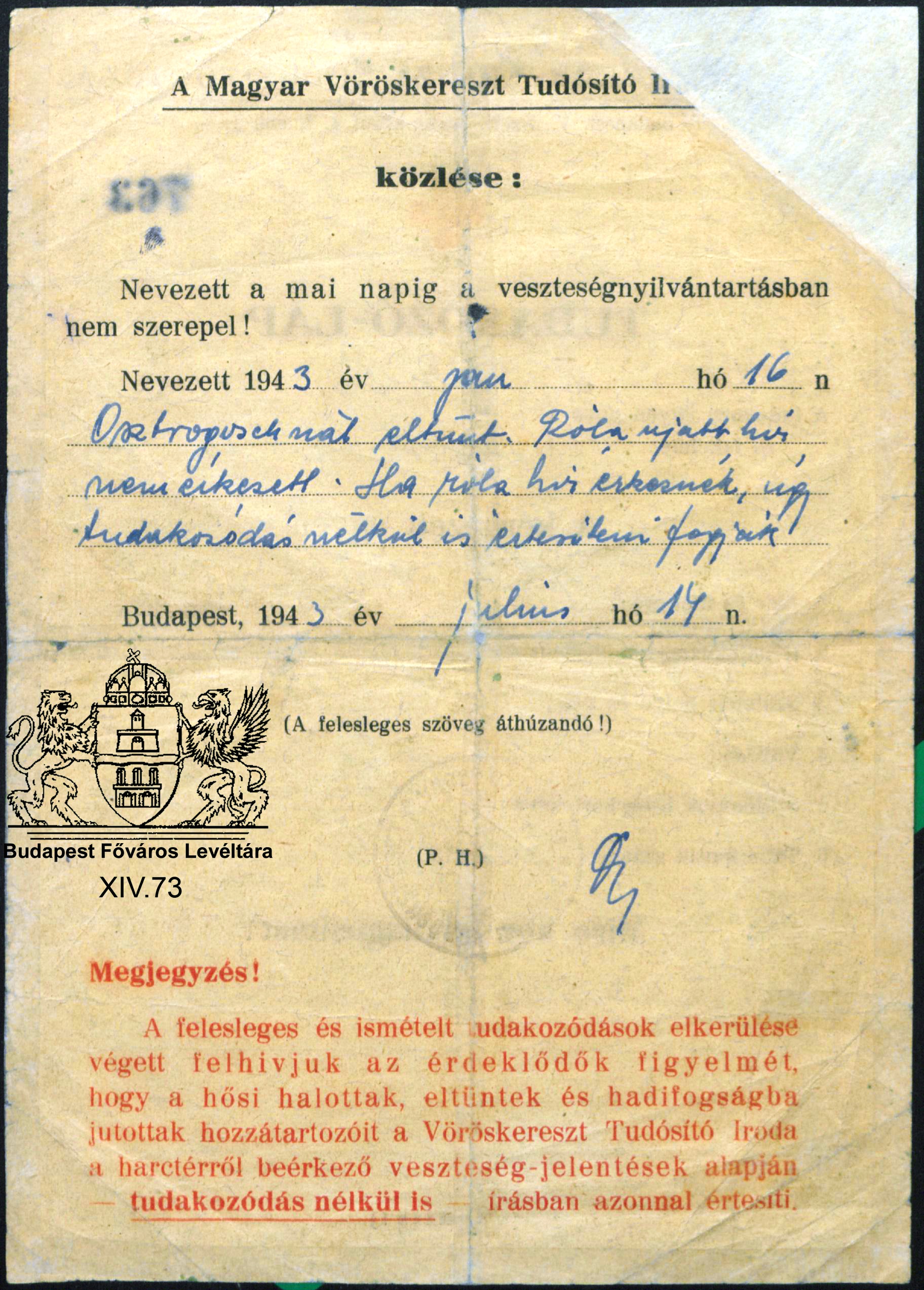 Megmaradt levelek, odalett kedves... Previous Toggle image Tudakozás és értesítés Kohut László sorsáról 2. Dokumentum típusa értesítés Keletkezés ideje 1943 Őrzési hely Budapest Főváros Levéltára Vonatkozó alkotás Megmaradt levelek, odalett kedves... Jelzet XIV.73 Letöltés Previous