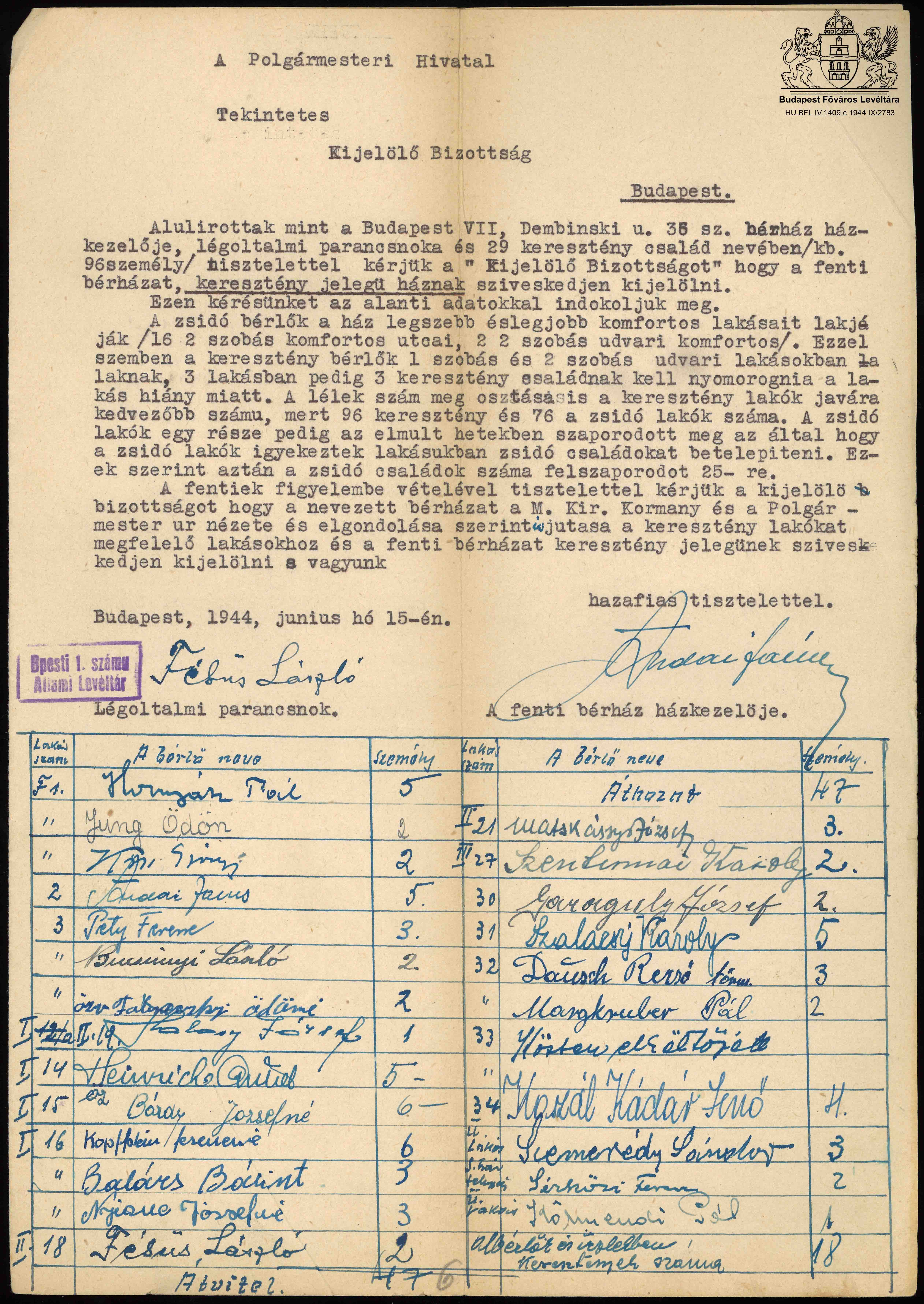 "... hogy mi maradhassunk és ők távozzanak" - Lakossági reakciók a csillagos házak kijelölésére PreviousNext Toggle image A VII. Dembinszky u. 36. számú ház lakóinak kérelme Dokumentum típusa kérelem Keletkezés ideje 1944.06.15 Őrzési hely Budapest Főváros Levéltára Vonatkozó alkotás "... hogy mi maradhassunk és ők távozzanak" - Lakossági reakciók a csillagos házak kijelölésére Jelzet HU BFL IV.1409.c 2783/1944-IX. Letöltés PreviousNext